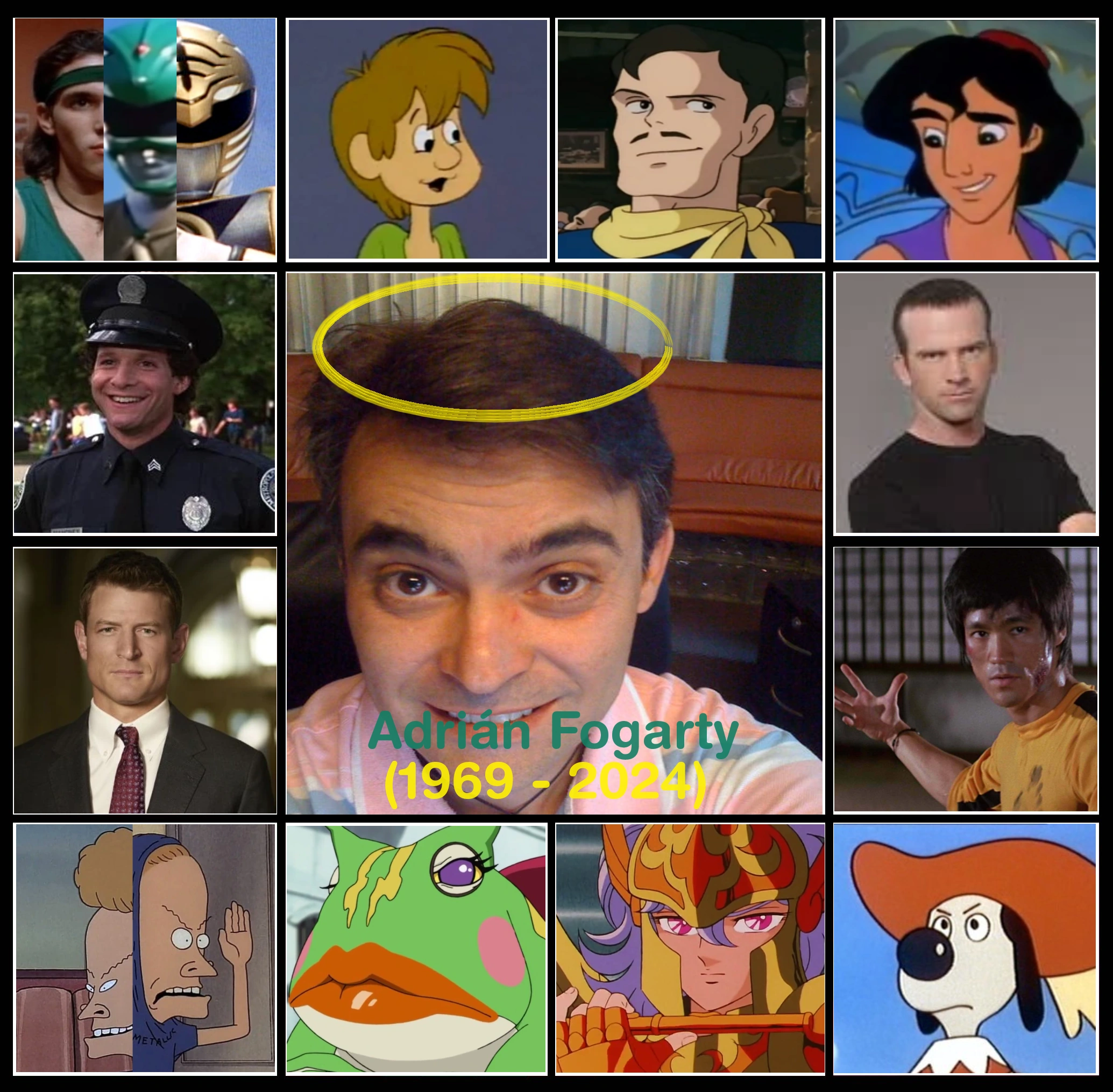 Adrián Fogarty fue un actor, director de doblaje, traductor, ingeniero de audio y empresario mexicano. Sus papeles más conocidos han sido Aladdín en la serie animada del mismo nombre, Tommy Oliver en la mayoría de sus apariciones en la franquicia de los Power Rangers, Beavis en Beavis y Butt-Head, el inventivo y jocoso Oficial Carey Mahoney de la franquicia Locademia de policía y la primera voz de Sorrento de Sirena en Los Caballeros del Zodiaco. Fue hijo del también fallecido actor Jorge Sánchez Fogarty y estuvo casado con la también actriz Marina Huerta.