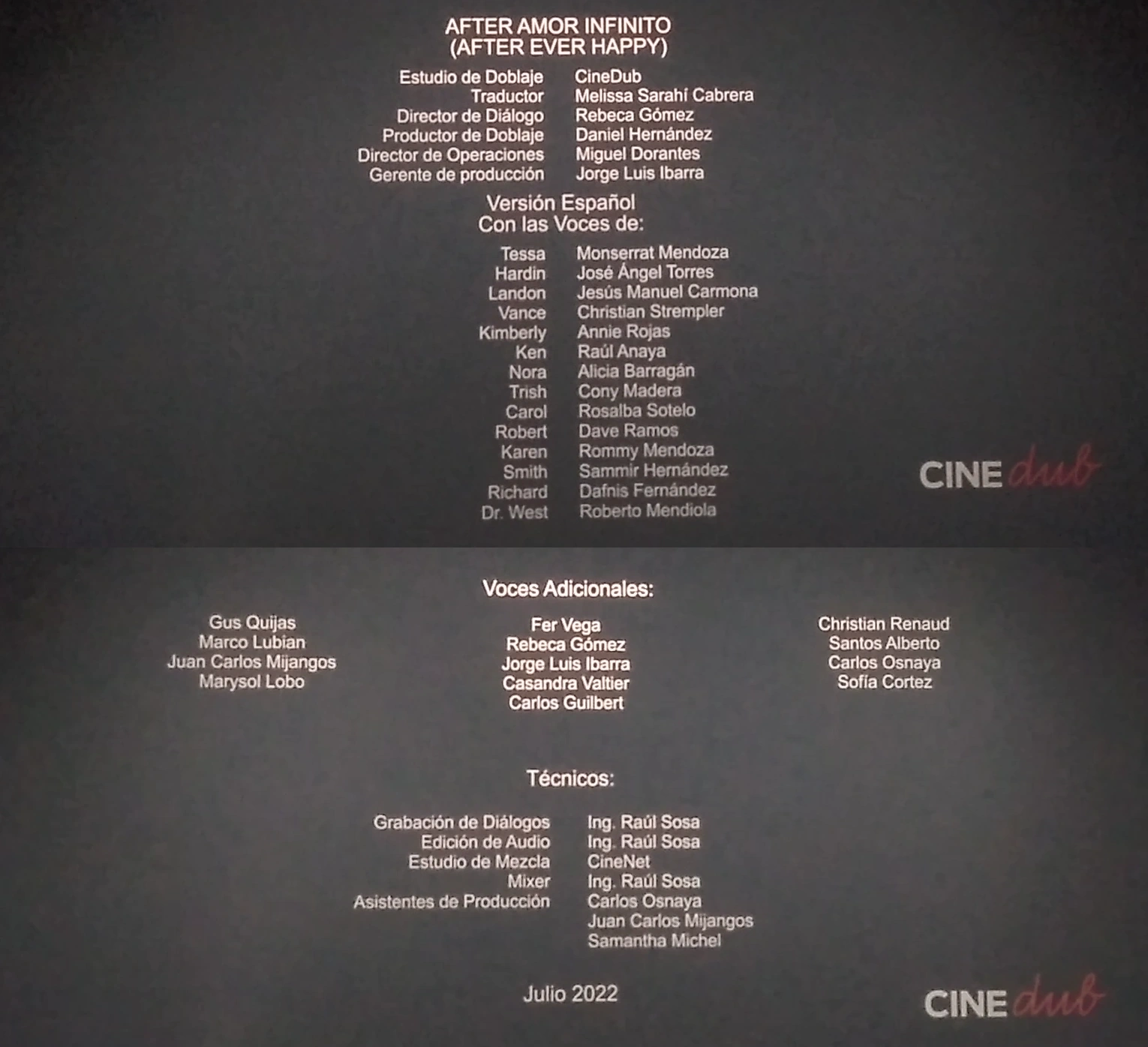 ![]() Créditos del cine. |