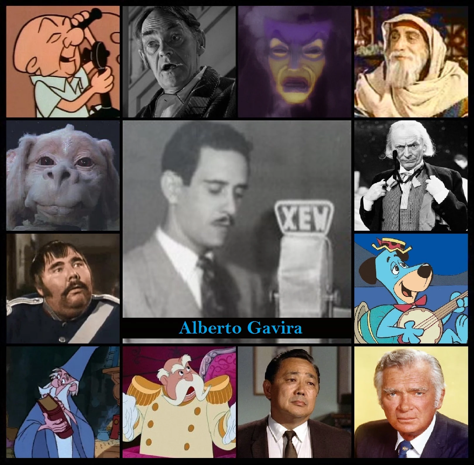 Alberto Gavira fue un destacado actor mexicano de radionovelas y de doblaje. Es conocido por ser la voz oficial de Huckleberry Hound, Jed Clampett en Los Beverly Ricos, Barnaby Jones, Falkor en La historia sin fin y por haberle prestado su voz a inolvidables personajes animados de Disney como Merlín en La espada en la piedra o el Espejo Mágico en Blanca Nieves y los siete enanos.