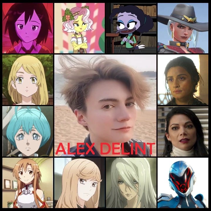 Alexander Delint, de nacionalidad mexicana, se dedica al arte del doblaje, tanto actuando como dirigiendo; la locución, el modelaje y la creación de contenido para YouTube. Célebre por haber sido la voz de Asuna Yuki / Asuna en Sword Art Online, Ashe en Overwatch, Lara Jean en A todos los chicos de los que me enamoré y sus secuelas, Yennefer de Vengerberg en The Witcher, Peni Parker en Spider-Man: Un nuevo universo, entre otros.