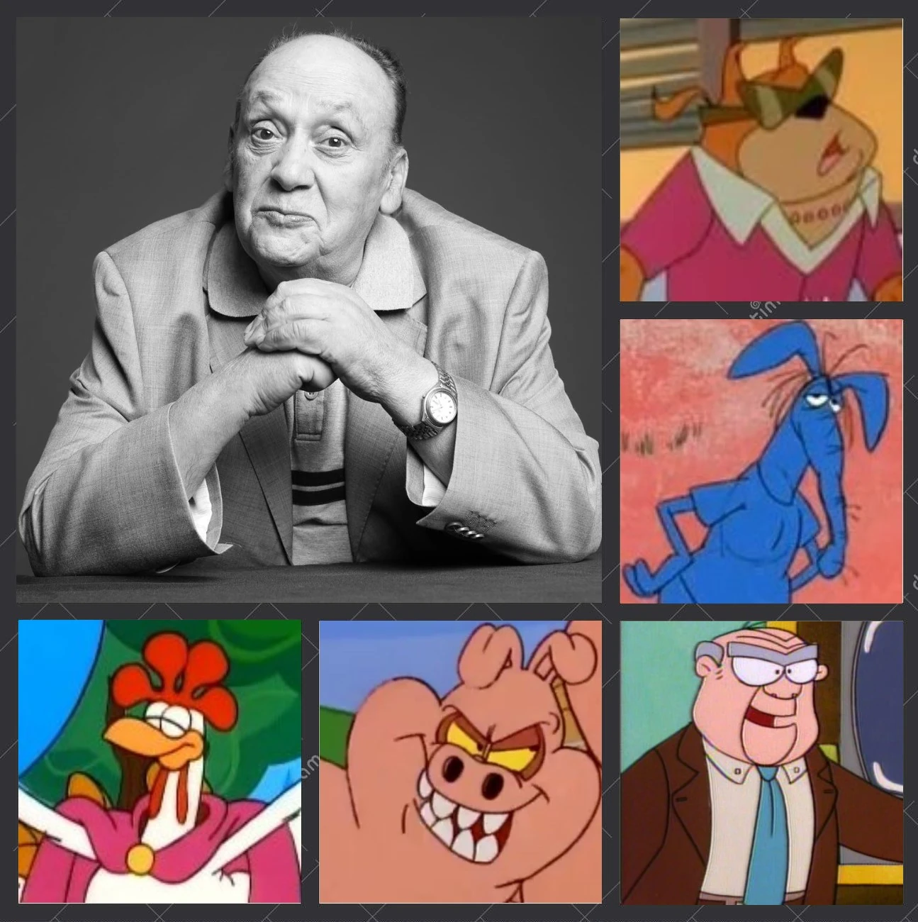 Roy en Garfield y sus amigos (temps. 1-2, algunos eps. y temps. 5-7). El oso hormiguero en La pantera rosa (1993) (2ª temp.) y La hormiga y el oso hormiguero (redoblaje chileno). El Perrodrino también en La pantera rosa (1993). Gort también en Garfield y sus amigos (3ª temp. y ep. 82-b, 5ª temp.). Conductor de WBOR también en Garfield y sus amigos (3ª temp.). Auric Goldfinger en James Bond Jr. El Camaleón también en James Bond Jr. Dr. Julius No también en James Bond Jr. |