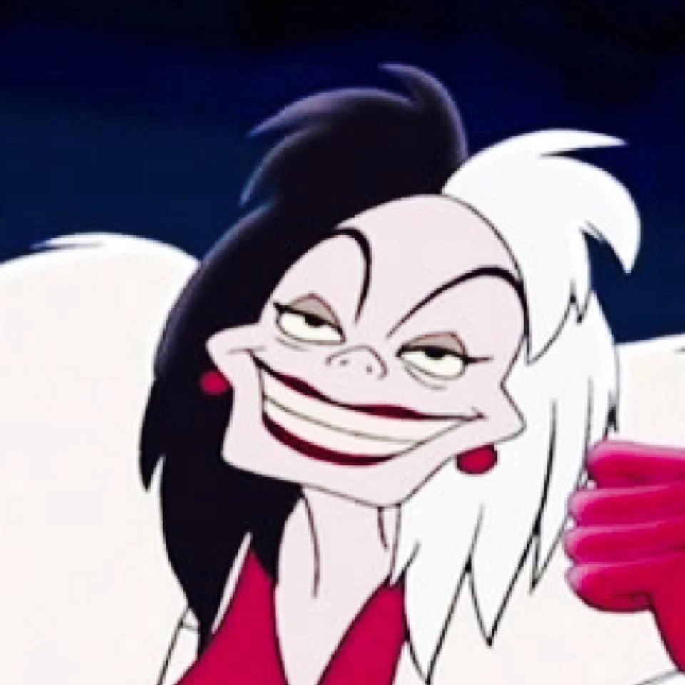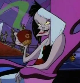 Cruella de Vil es la principal villana de la famosa película animada de Walt Disney 101 Dálmatas. La meta de Cruella es robar los perros dálmatas de su amiga y compañera Anita y convertirlos en un abrigo de piel.