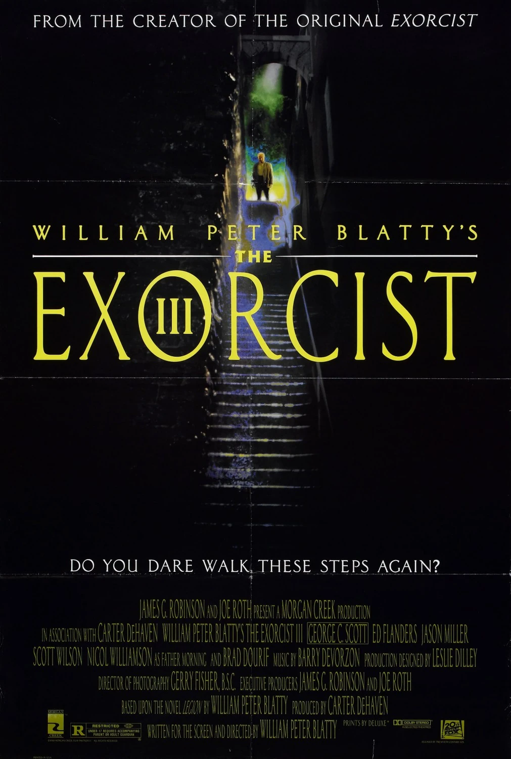 El exorcista III (The Exorcist III) es una película estadounidense de suspenso sobrenatural de 1990, dirigida y escrita por William Peter Blatty, producida por Carter DeHaven y protagonizada por George C. Scott, Ed Flanders, Brad Dourif y Jason Miller. La cinta cuenta con música de Barry De Vorzon.