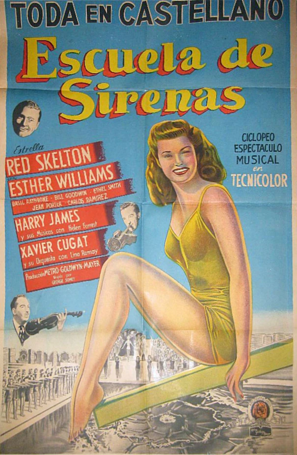 Escuela de sirenas, película musical protagonizada por Red Skelton, Basil Rathbone y Esther Williams. Dirigida por George Sidney .