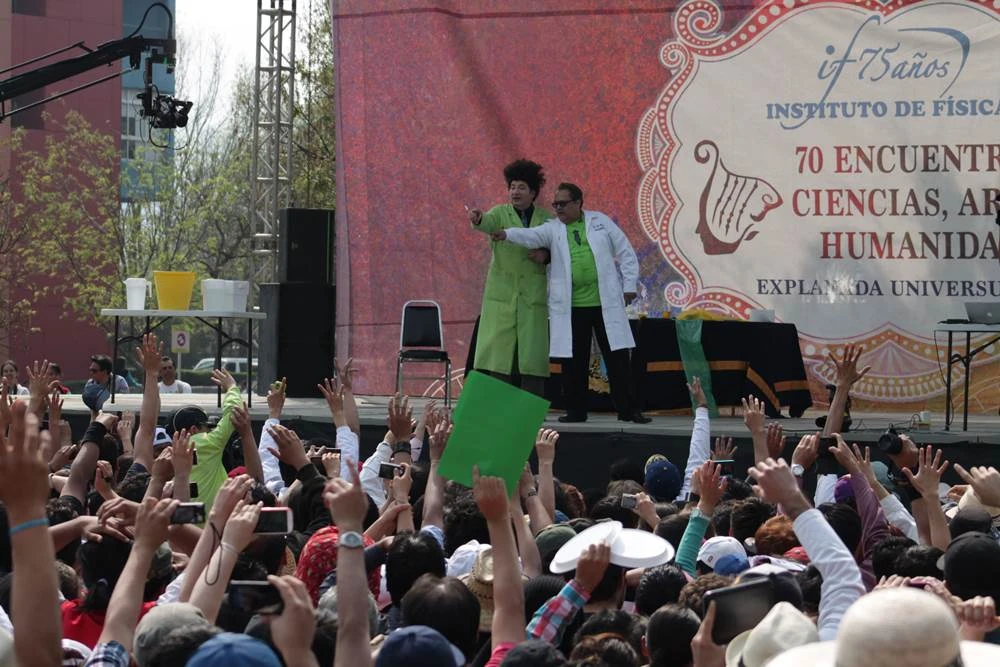 Juan Alfonso Carralero traduciendo en vivo la voz de Beakman en México.