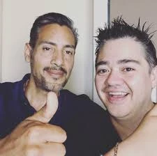 Juan Carlos Tinoco junto al actor Eduardo Garza en las grabaciones de Dragon Ball Super.