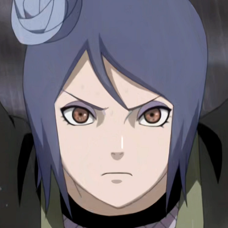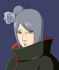 Konan (小南) era una kunoichi de Aldea de la Lluvia y único miembro femenino de Akatsuki. Llevaba el anillo "Blanco" (白, Bya) en el dedo corazón derecho. Después de la muerte de Nagato, ella desertó de la organización y se convirtió en la líder de Aldea de la Lluvia. Poseía un talento natural para el origami.