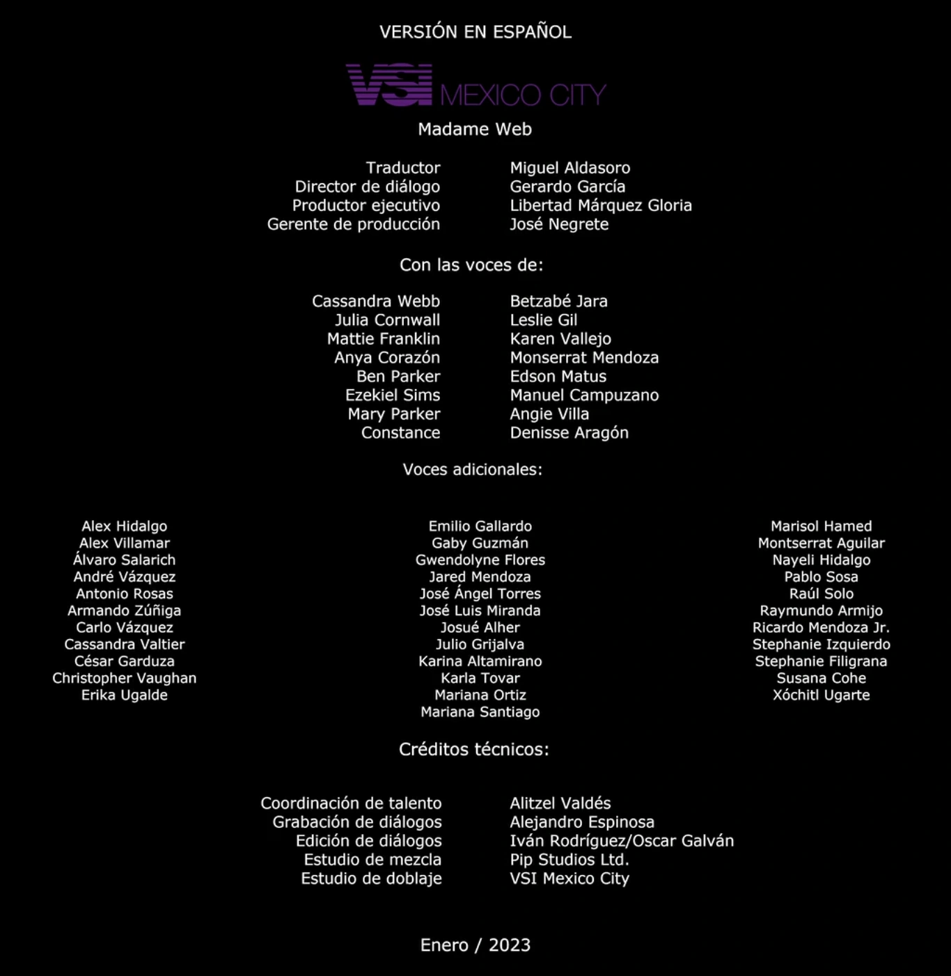 - Marianna Santiago fue acreditada erróneamente como Mariana Santiago.