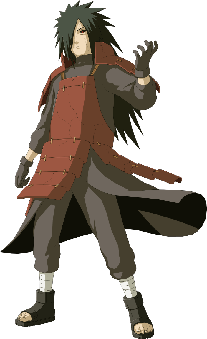Madara Uchiha (うちはマダラ) fue un legendario shinobi, co-fundador de la Aldea de la Hoja y líder del Clan Uchiha durante su tiempo. Además, fue la pasada Reencarnación de Indra Otsutsuki. Luego, fue revivido en la Cuarta Guerra Mundial Shinobi para luchar contra la Gran Alianza Shinobi, revelando sus verdaderas intenciones, haciéndolo el antagonista principal de la serie. Madara logró capturar a las nueve Bestias con Cola, sellarlas en la Estatua Demoníaca del Camino Exterior y, de esa manera, convertirse en el tercer y último Jinchuriki del Diez Colas.