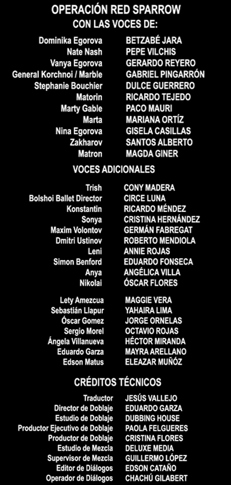 - Si bien, Carla Castañeda es la voz recurrente de Jennifer Lawrence para Fox, no retomó a la actriz en esta película debido a su renuncia de Dubbing House, la productora de doblaje, así que fue sustituida por Betzabé Jara.