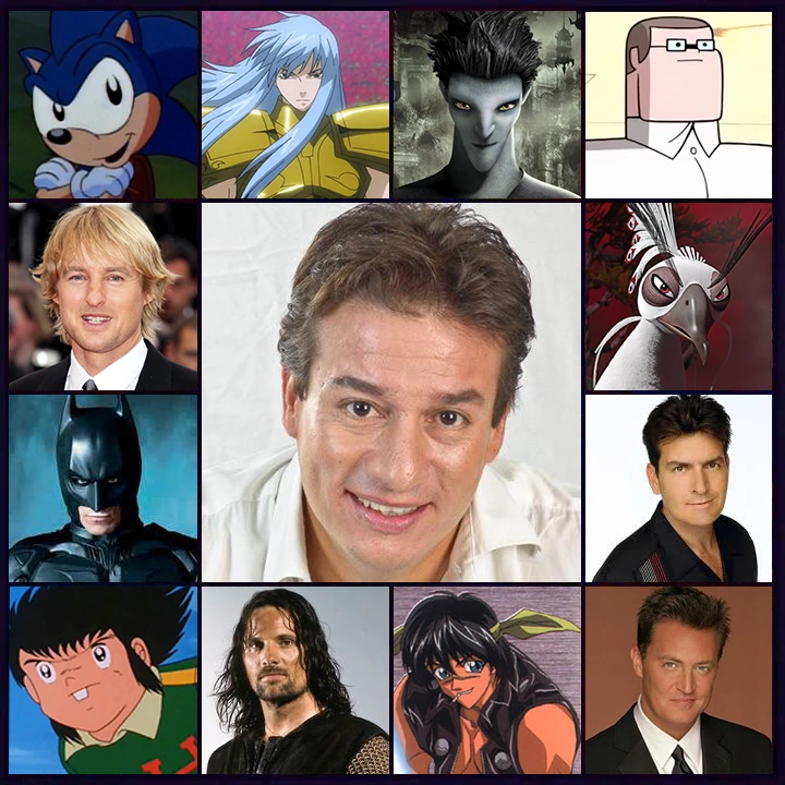 El Narrador en la franquicia de Las chicas superpoderosas. Bruce Wayne / Batman en la trilogía de Christopher Nolan y diversas producciones de DC Comics. Aragorn en la franquicia de El Señor de los Anillos. Charlie Harper en Dos hombres y medio y Todo un parto. Chandler Bing en Amigos. Kazuo Korioto en Supercampeones y sus películas. Roman Pearce (2ª voz) en la franquicia de Rápidos y furiosos. "El Rayo" McQueen en todas sus apariciones oficiales fuera de las películas. Will Truman en Will & Grace. Jedediah Strong Smith en la trilogía de Una noche en el museo. Ed Warren en la franquicia de El conjuro. Sonny en Yo, robot. Kozuki Oden también en One Piece Solomon "Doc" Sábado en Los sábados secretos y Ben 10: Omniverse. Ebisu en Naruto Shippūden. Kidōmaru en Naruto y Naruto X Boruto: Ultimate Ninja Storm Connections. Gato con botas en La Shrektacular navidad de Burro, Shrek: Asústame si puedes, El ídolo de Muy Muy Lejano y los tráilers de la franquicia de Shrek. Pitch Black (El Coco) en El origen de los guardianes. Barats en Mobile Legends: Bang Bang. Fong Ten Pa en Soul Hunter. Albafica de Piscis en Los Guerreros del Zodiaco: El lienzo perdido. Gabriel Miller / Subtilizer / Emperador Vector en Sword Art Online: Alicization. Conejo Blanco en Devil May Cry. Boris Tepes en Rey chamán. Izō Motobe en Baki (temp. 1). Det. David Mills en Los siete pecados capitales (doblaje original). Tim Ballard en Sonido de libertad. Alfred Borden en El gran truco (versión de Warner). Ponyboy Curtis en Los rebeldes. Frank en The White Lotus. Dennis Reynolds en It's Always Sunny in Philadelphia (temp. 14ª-). Jackson Curtis en 2012. Charles "Chuck" Bartowski en La doble vida de Chuck. Ace Merrill en Cuenta conmigo. Michael Ryan en Admiradora secreta. Joel Goodson en Negocios riesgosos. Chris Taylor en Pelotón. Neil Perry en La sociedad de los poetas muertos (doblaje original). Lestat de Lincourt en Entrevista con el vampiro (doblaje original). Andrew Beckett en Filadelfia. Vic "Deak" Deakins en Código: Flecha Rota. Paul Soames en Shanghai (Doblaje TWC). Simon Templar en El santo. Ethan Hunt en la primera película de Misión: Imposible. Henry Hill en Buenos muchachos (redoblaje). Dr. David Bowman en 2001: Odisea en el espacio (redoblaje). Bob Lee Swagger en Tirador. Dr. Niko "Nick" Tatopoulos en Godzilla (1998) y su serie animada. Edward Bloom (joven) en El gran pez. Sonny Wortzik en Tarde de perros (2ª versión). Brian Flanagan en Coctel (redoblaje). Capitán Capellán A.T. Tappman en La trampa 22. Mike O'Donell en 17 otra vez. Sr. Morgan en 10 cosas que odio de ti. Zeke Tyler en Aulas peligrosas. El Inspector Gadget en la primera película del mismo nombre. David Brent en The Office (UK) (version On Screen Films). Chip Rockefeller en Los Picapiedra en Viva Rock Vegas. Tommy Jarvis en Viernes 13 parte 6: Jason vive. Sean Robertson Viernes 13 parte 8: Jason toma Manhattan. Rod Lane en Pesadilla en la calle del infierno. Dan Jordan en Pesadilla en la calle del infierno 4: El amo de los sueños. Oficial Roy Miller en La ciudad de las tormentas. David Ackerman en The Rookie (redoblaje). Nick Eliot en Loca obsesión. Hayes en King Kong. Leo Handler en La traición. Jared en Azul extremo. Blake Hughes en Dulces y sangrientos 16. Joe Pistone/Donnie Brasco en Donnie Brasco. Jack Foley en Círculo de amigos. Edward Ferrars en Sensatez y sentimientos. Michael Sullivan en Los hijos de la calle (redoblaje). Sgto. John Berlin en Jennifer 8. John Connor en Terminator: La salvación (versión Warner). Mark Russell en Godzilla 2: El Rey de los Monstruos y Godzilla vs. Kong. Sebastian Shaw en X-Men: Primera generación. Det. Larry "Fitz" Fitzgibbon en Peacemaker. Pete "El Pistola" Whipple en Knuckles. Eric Lamonsoff en Son como niños y su secuela. Jensen Ames en Death Race: La carrera de la muerte. Gerry Kennedy en Posdata: Te amo. Robert "Bobby" Green/Grusinsky en Dueños de la noche (1ª versión). Paul Avery en Zodíaco. Humphrey en Stardust: El misterio de la estrella. Jonathan Trager en Señales de amor. Terry Noonan en Estado de gracia. Mud en El niño y el fugitivo. Manolo "Manny" Ribera en Cara cortada (1983) (3ª versión). Detective Max Kirkpatrick en Atracción explosiva. Scott "Dude" Foreman en La chica del calendario. Joe Perreti en Mi mamá es una sirena. Greg Phillipe en Scary Movie. Tom Logan en Scary Movie 3 y Scary Movie 4. James McGrath en Bad Boys: Hasta la muerte. Parker en Leyenda urbana. Beauguard "Bo" Billings en Hada por accidente 2. Tommy "Birdman" Rowland en Chicas hermosas. Mike Enslin en 1408. Sargento Minh Young Kim en la saga Gears of War. Ricardio en Hora de aventura. Savio en Los pingüinos de Madagascar. Leo Wyatt en Hechiceras (temps. 3-8). John "Johnny" Smith en Zona muerta. Dr. Luka Kovač en E.R. Sala de urgencias. Oliver Putnam en Only Murders in the Building. Koumori en The Detective is Already Dead. Nicolas Kumada en Sailor Moon y Sailor Moon R (ep. 63). Rudolph Hagen en Aika. Rat-chan en Las aventuras de las Mini Diosas. Diablo Aquos en Bakugan. Dr. Aaron Thunderland Jr. en Tegami Bachi: Abejas Mensajeras. Barom One en el anime del mismo nombre. TK McCabe en Super Crooks. Inoshige en Sabikui Bisco. Conrad Roth en Tomb Raider: La leyenda de Lara Croft. Kwan en El dragón de papá. Maurice en Happy Feet: El pingüino. Sr. Uhl en Trollhunters. A.J. Dalton en Hot Wheels Battle Force 5. Hego (2ª voz) en Kim Possible. Jack la linterna (Jack O'Lantern) en Scooby-Doo y el rey de los duendes. Mack en Rey lobo. Vexius en Winx Club: Vuelve la magia. Harry Brown en El duende mágico. Búho en Mi osito. Frank "Tony Lip" Vallelonga en Green Book: Una amistad sin fronteras. John Reid en Bohemian Rhapsody: La historia de Freddie Mercury. Dr. Wellington Yueh en Dunas (redoblaje). Chico (voz interna) en Contra todos. Agente Jake Harper en ¿Y dónde están las rubias?. Robert Pryce en Terror en la Antártida. John Labat en MaXXXine. Nick en La fuente del amor. Jim Luther Davis en 