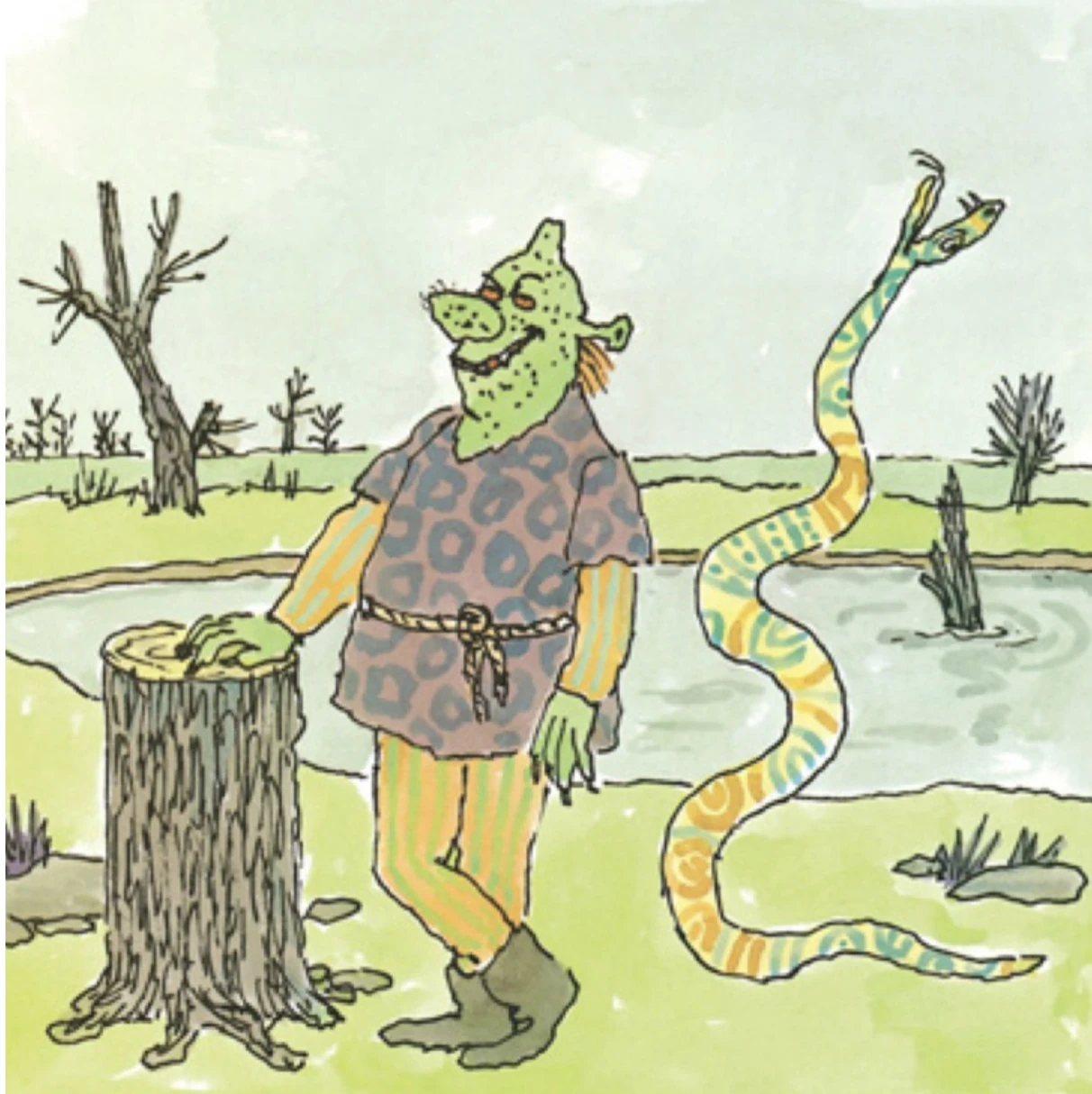 Shrek es un gran ogro verde que vive en un pantano. Allí reside felizmente, asustando a los humanos que se aventuran o se pierden, hasta que un día descubre que el lugar ha sido invadido por personajes de cuentos de hadas que han sido expulsados de la comarca por el villano Lord Farquaad. Luego de hablar con este, acepta tratar de rescatar a la princesa Fiona, a cambio de que Farquaad saque a todos los personajes de cuentos de hadas del pantano. Shrek fue interpretado en la versión en inglés original por Mike Myers. En Hispanoamérica el doblaje estuvo a cargo de Alfonso Obregón. En el libro, tiene una apariencia grotesca y repulsiva, puede escupir flamas por la boca, sacar humo por las orejas, disparar rayos láser de los ojos y matar por infección a cualquiera que lo muerda, Sus padres lo echan de casa, porque es momento de que explore el mundo y haga daño, como todo ogro.