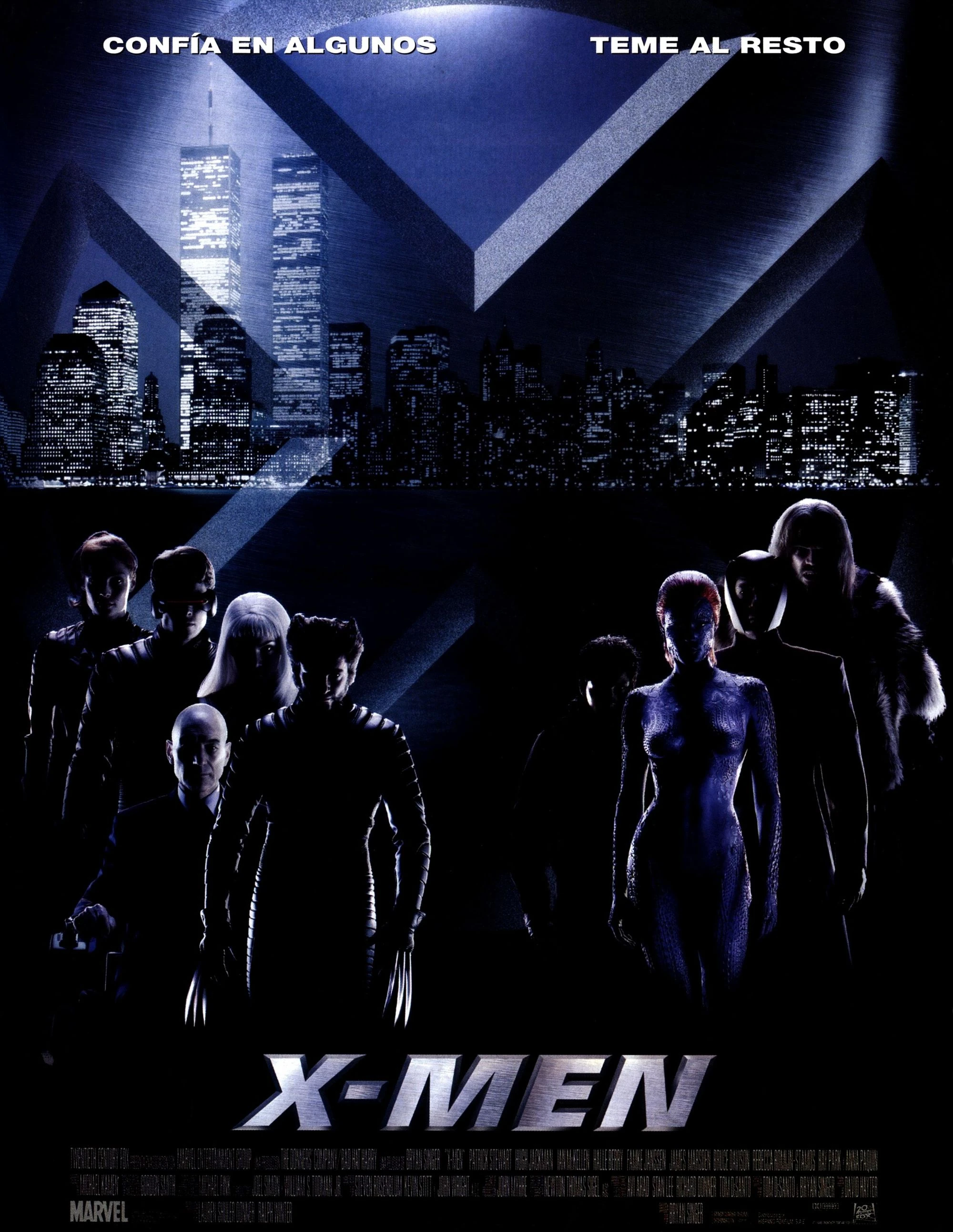 X-Men es una película estadounidense del año 2000, producida por Lauren Shuler Donner y Ralph Winter, escrita por David Hayter (a partir de una historia de Singer y Tom DeSanto), dirigida por Bryan Singer y protagonizada por Hugh Jackman, Patrick Stewart, Ian McKellen, Famke Janssen, James Marsden y Halle Berry.